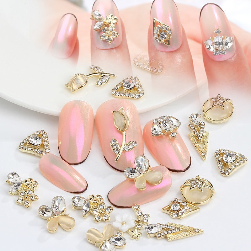3D Nail Art Charms Alloy Nail Jewelry Transparent Shiny Charm Metal Gemstone Fashion DIY Nail Art Decorations