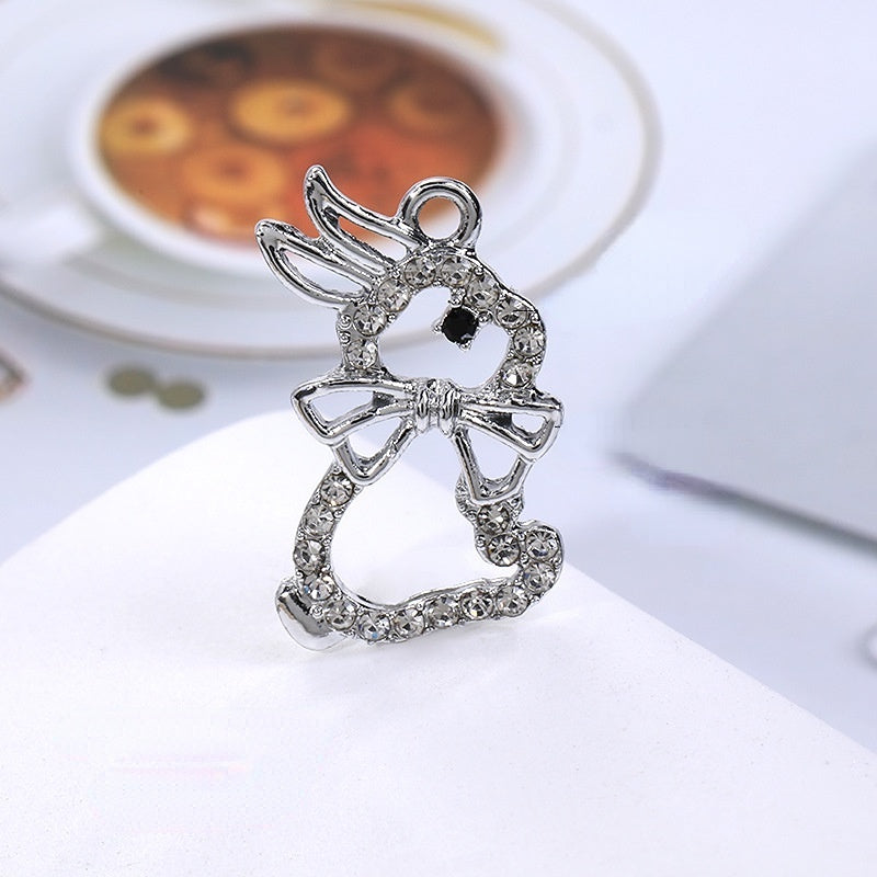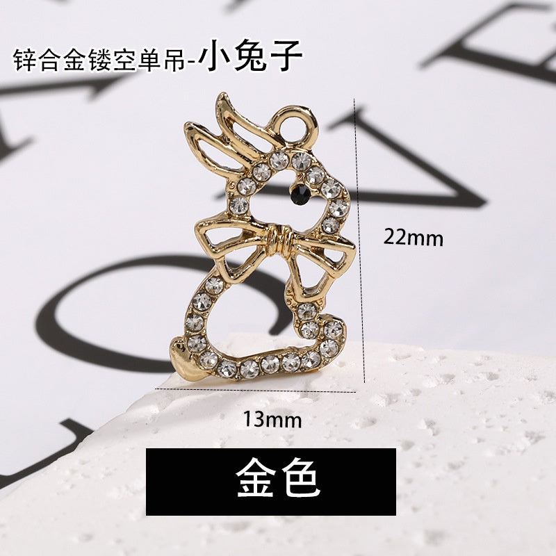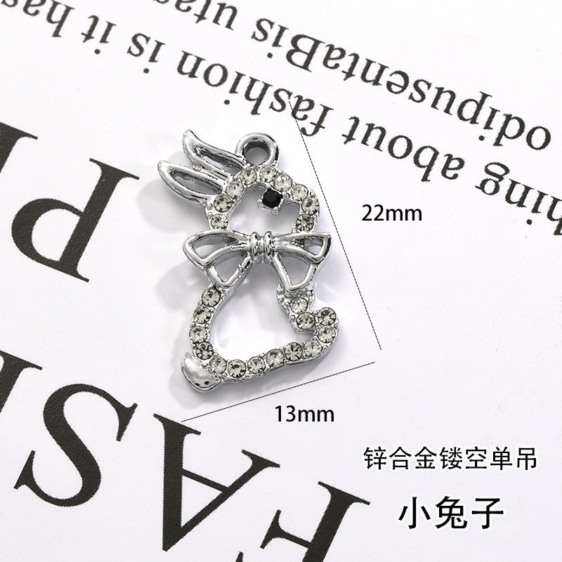 2pcs Rhinestone Pendant Cute Little Rabbit Alloy Pendant Diy Accessories Material Necklace Bracelet Pendant Key Chain Accessories