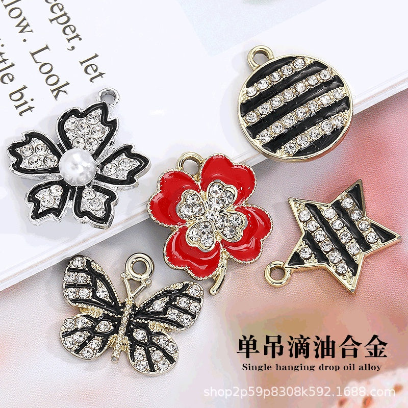 Four-leaf Clover Single Hanging Necklace Pendant Pentagram Butterfly DIY Alloy Accessories Phone Case Back Sticker Keychain
