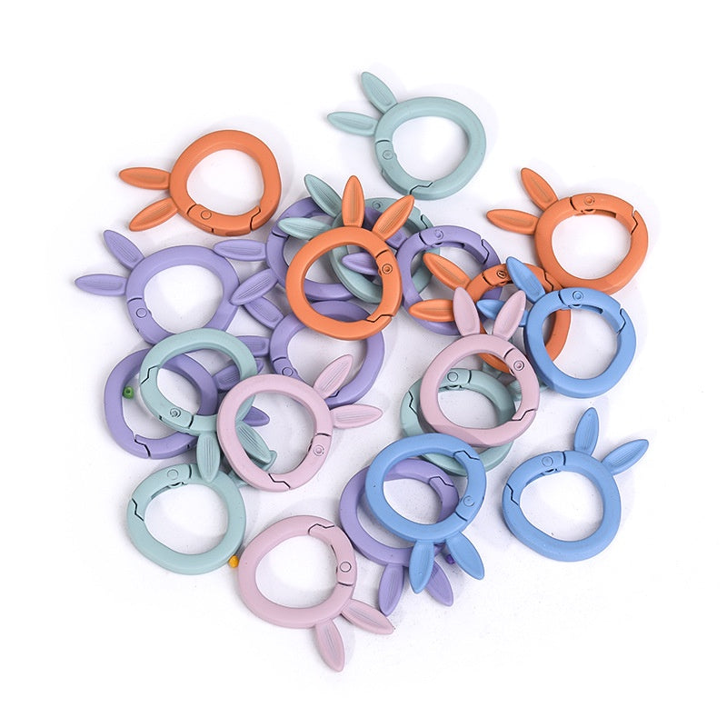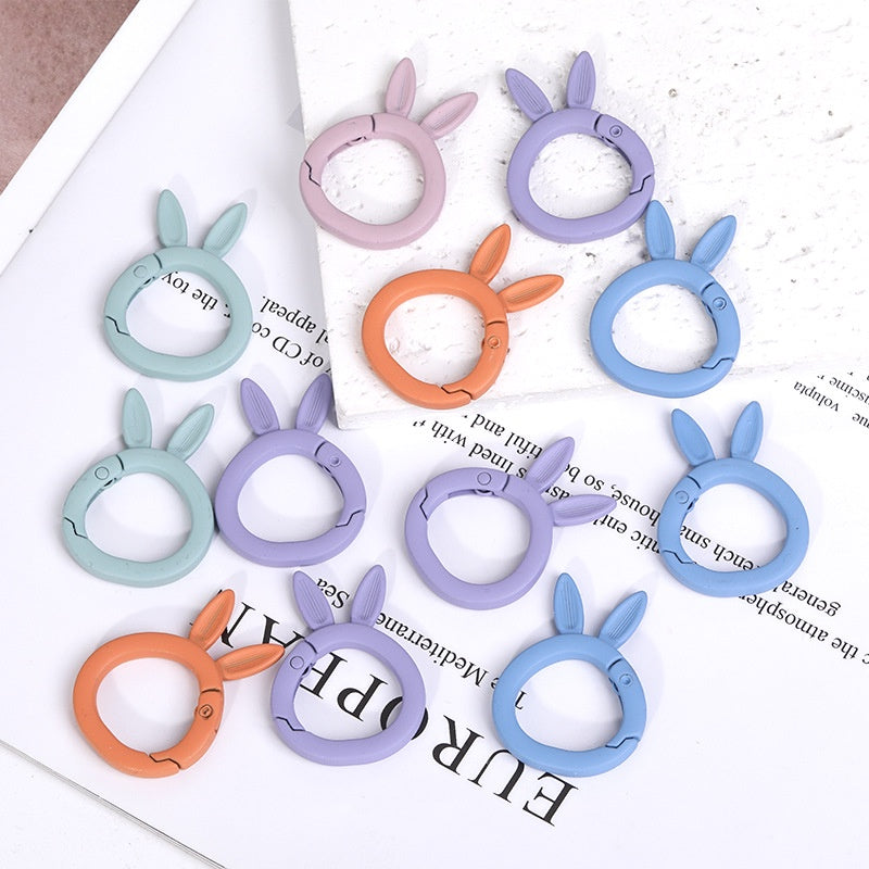 5pcs Bake Paint Frosted Color Rabbit Keychain Spring Buckle Opening Ring Spring Ring DIY Ornament Accessories Link Ring