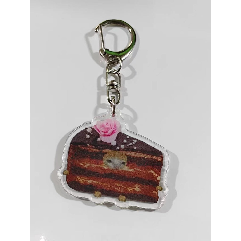 Funny Food Cat Acrylic Keychain Cat School Bag Pendant Transparent Cartoon Gift Keychain