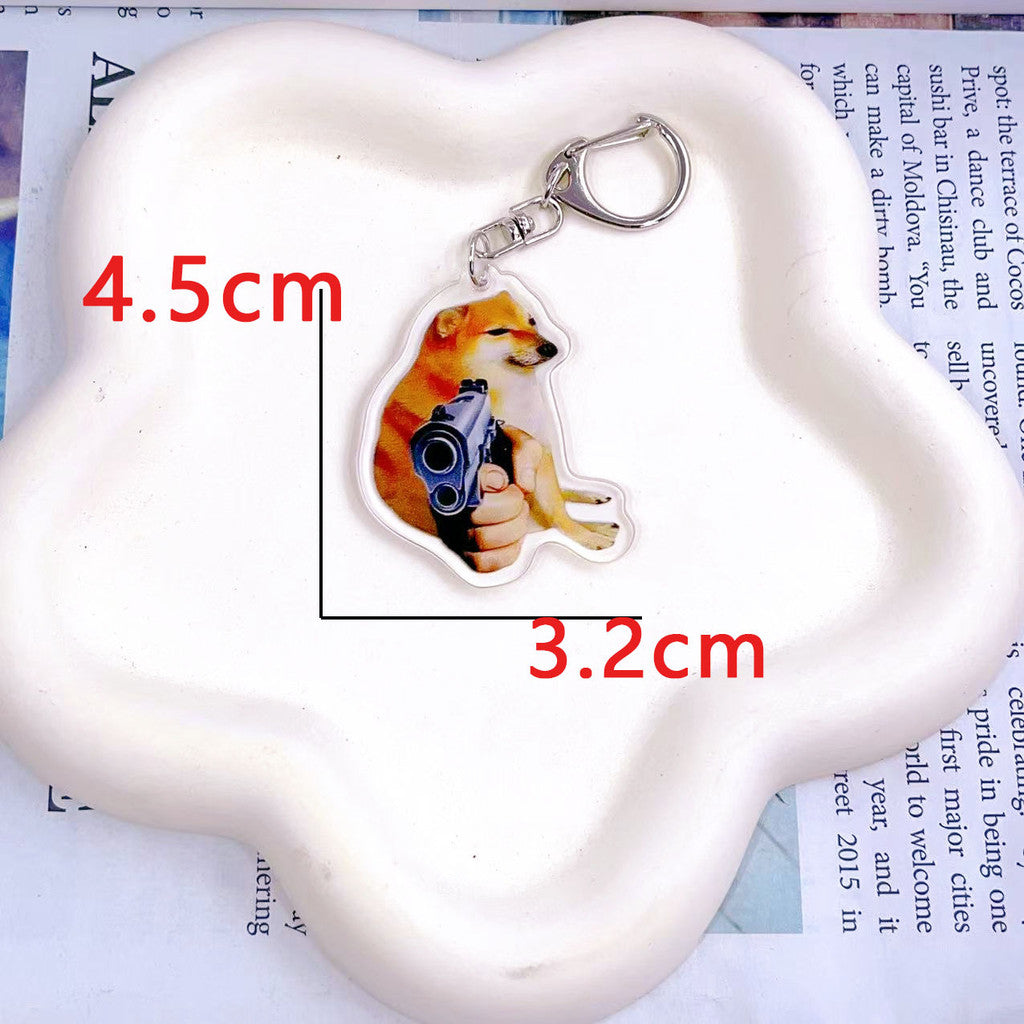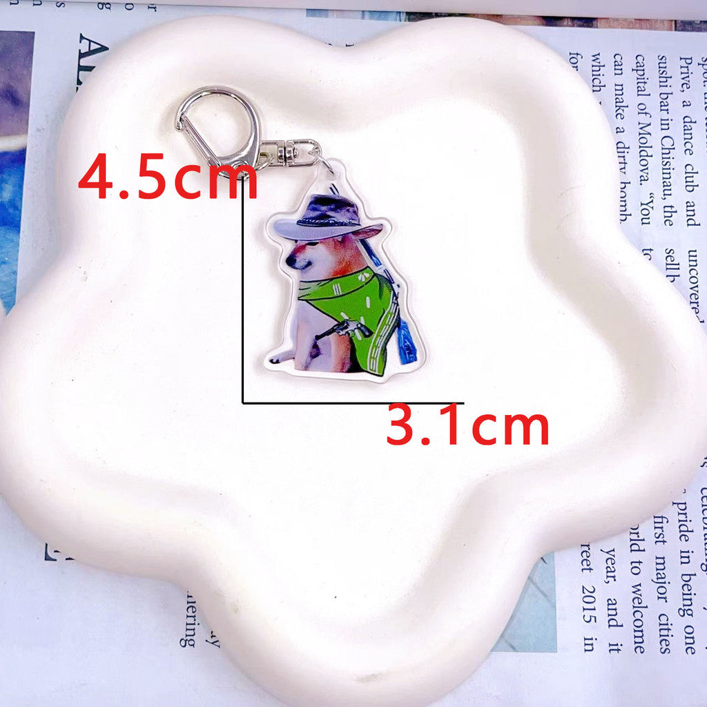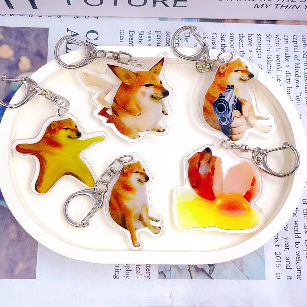 Quirky Cartoon Acrylic Key chain Funny Adorable Goofy Shiba Inu Backpack Pendant