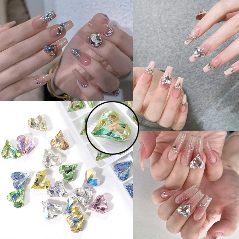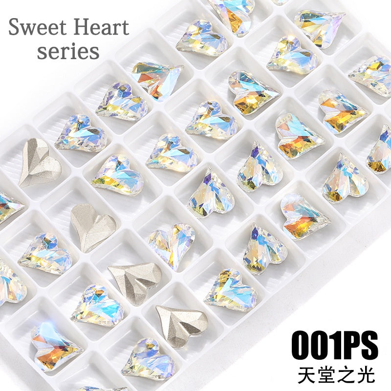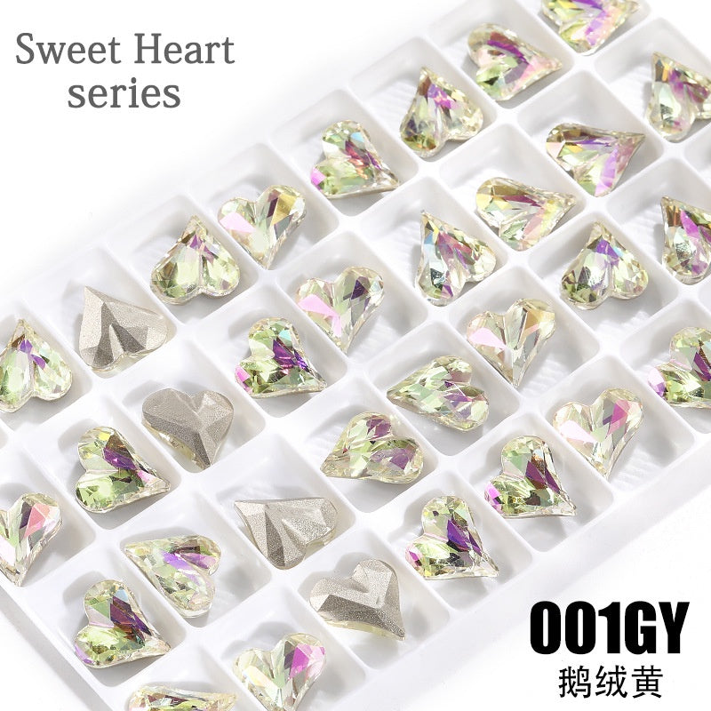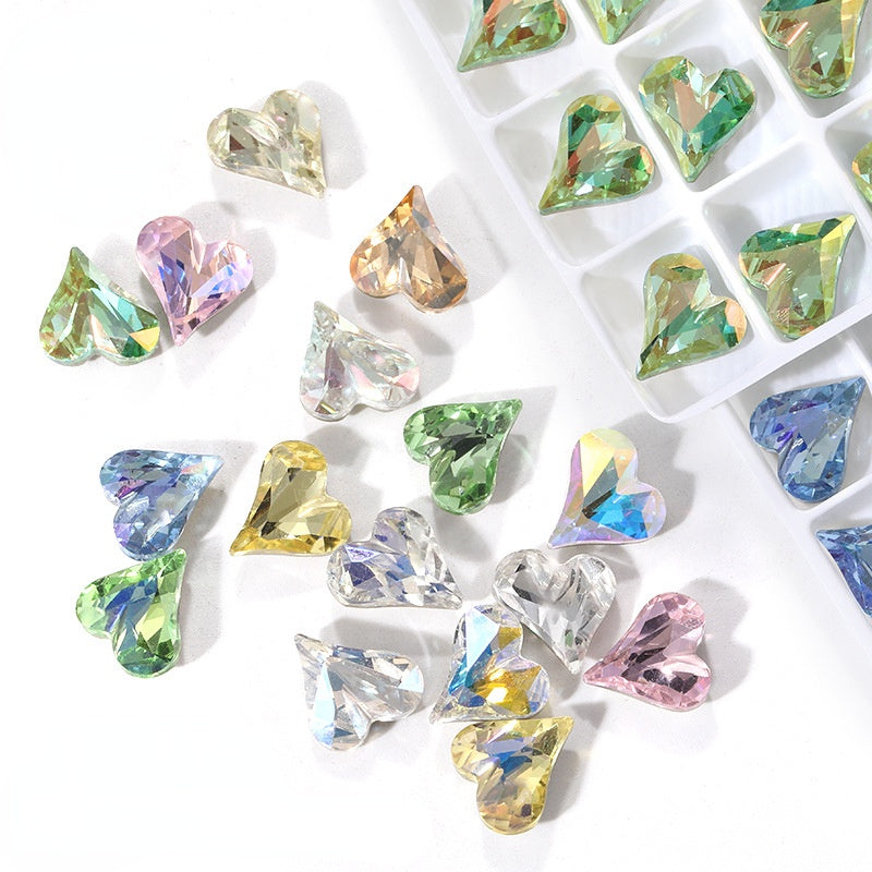 Crooked Heart Crystal Glass Diamond Heart Shaped Rhinestones Diy Jewelry Accessories Nail Sticker Crystal