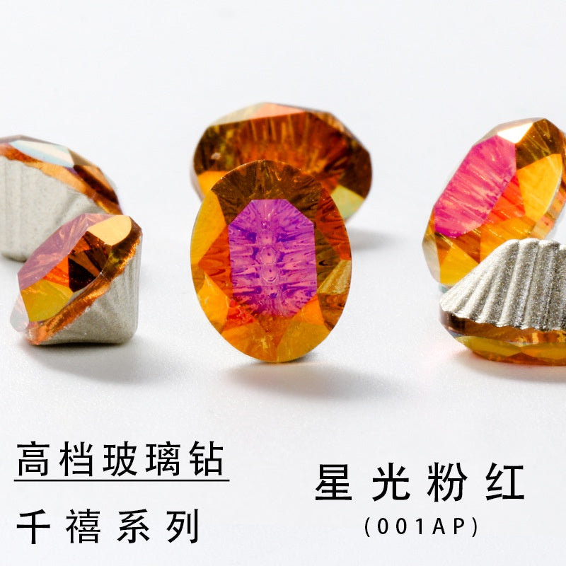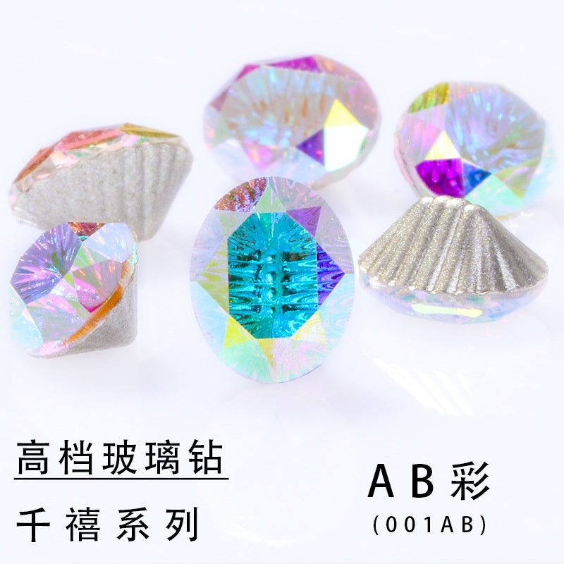 Nail Art Oval Aurora Mocha Pointy Bottom Diamond-rhinrhine-glass Diamond-nail Bag Cap Accessory Decoration DIY