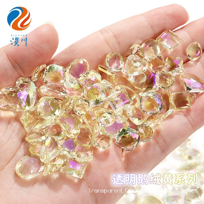 Nail Rhinestone 10pcs Glass Products Transparent Goose Down Yellow Series Crystal Mobile Phone Stick Rhinestone Diy Accessories