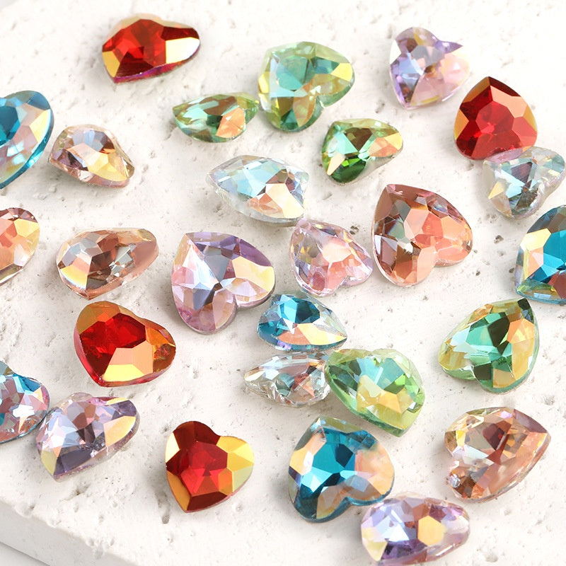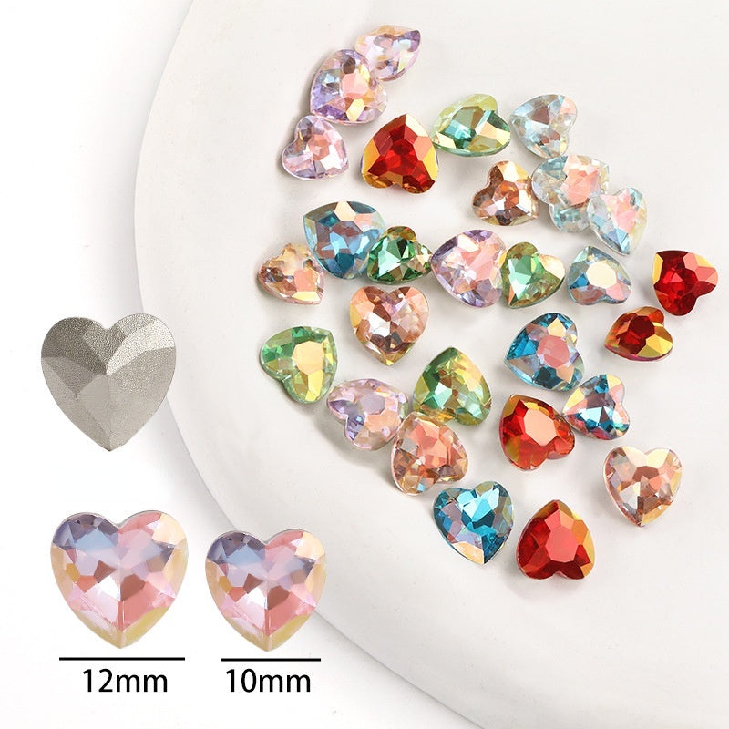 50PCS Heart Shape 10mm/12mm Nail Arr Crystal Shiny Rhinestone for Clothing Jewelry Making