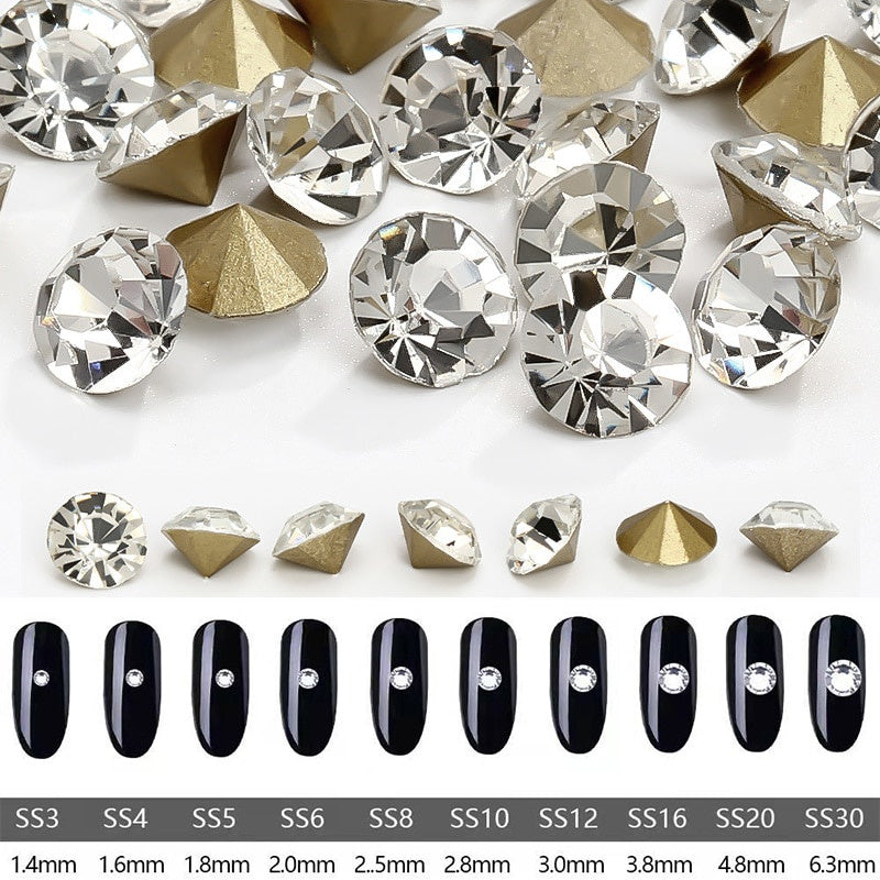 Pointy-bottom White Rhinestone Imitation Czech Rhinestone Diy Accessories Nail Stick Material Nail Rhinestone