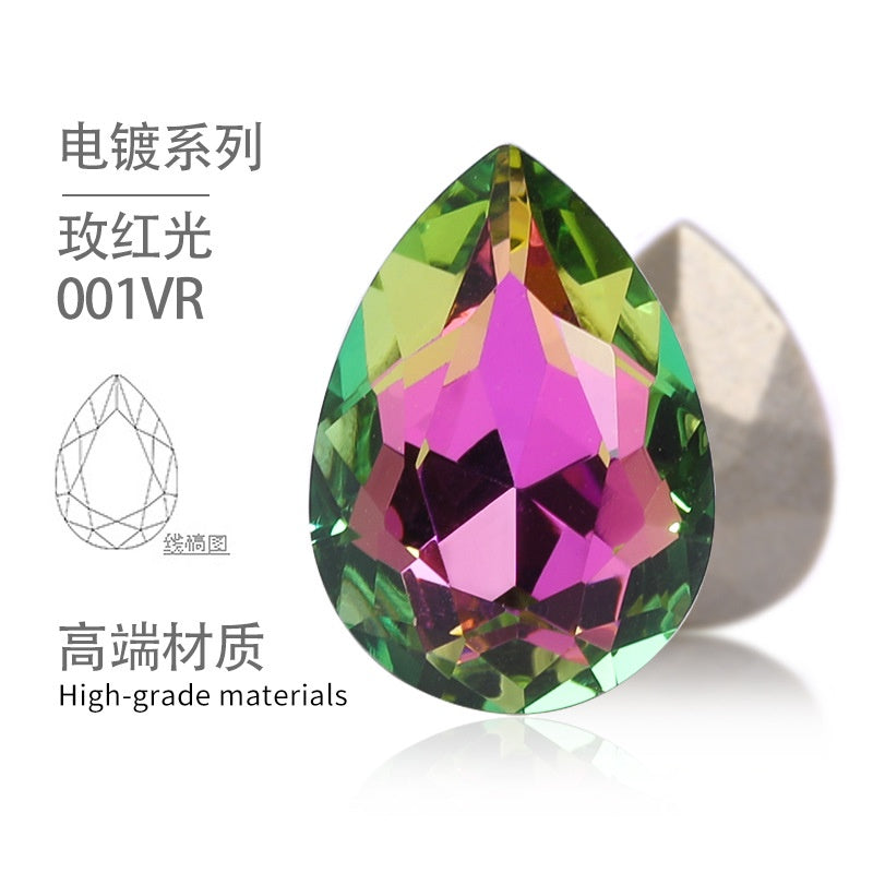 10PCS Glass Flat Seam Water Drop Hand Seam Rhinestone Super Bright AB Color Flat Seam Rhinestone