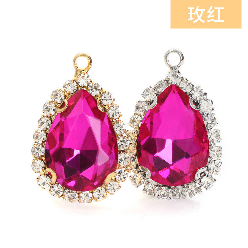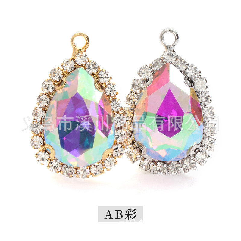 Water drop crystal buckle single hanging copper bottom hanging DIY glass rhinestone jewelry accessories single hole pendant