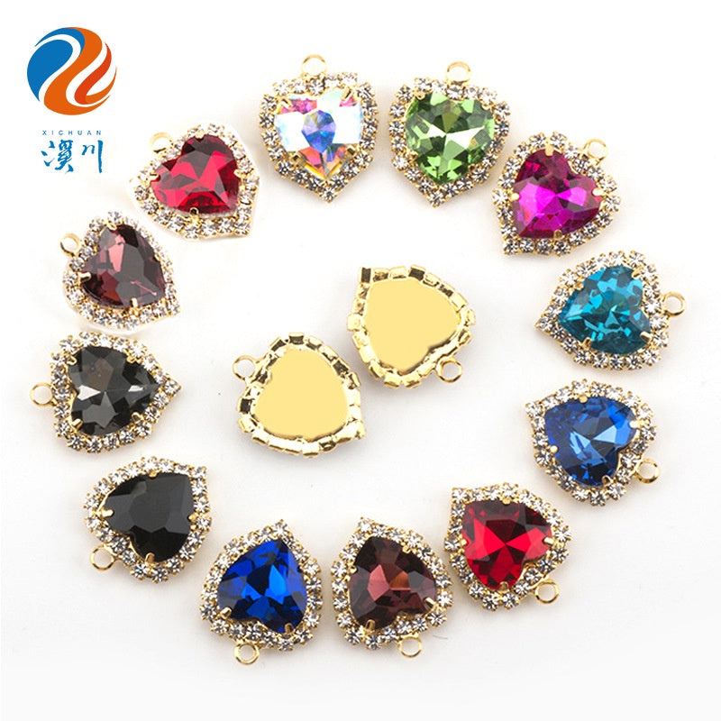 Heart Shape Glass Pointback K9 Crystal with Gold Bottom Sew on Rhinestone DIY Clothing Decoration