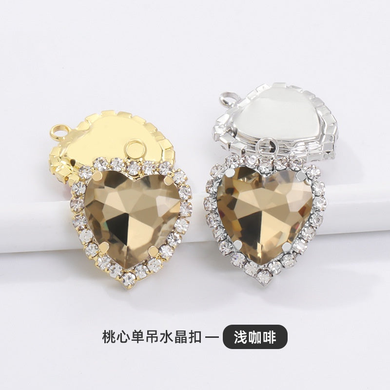 K9 Mocha Flat Buckle Flat Bottom Hand Sewn Drill Fat Peach Heart Crystal Double Hole Love Glass Drill Bridal Clothing Dress Accessories