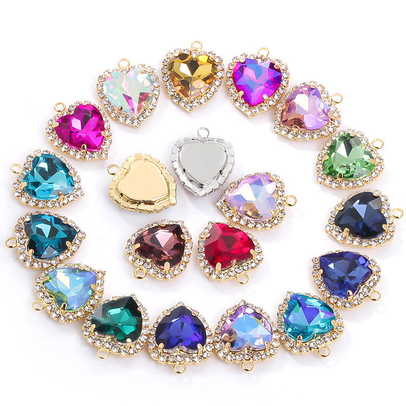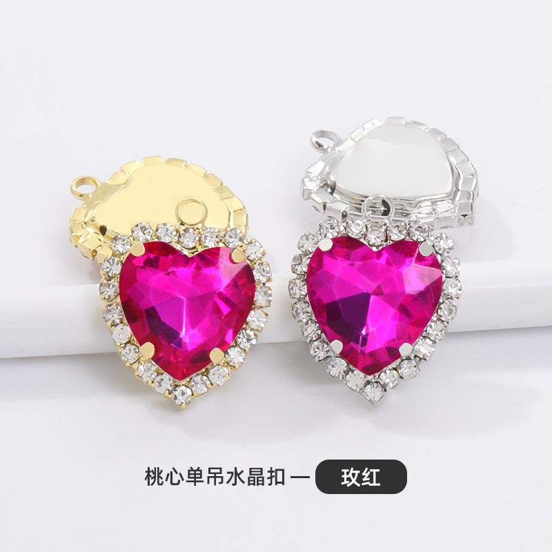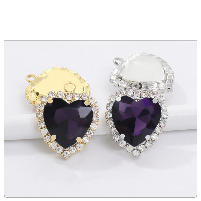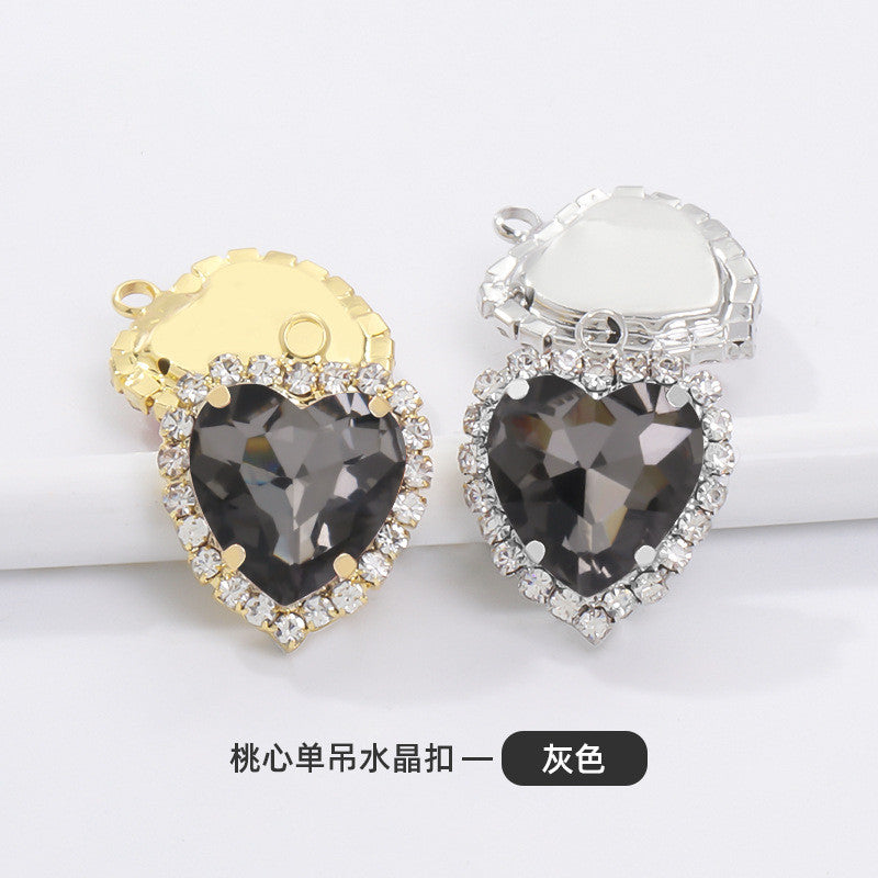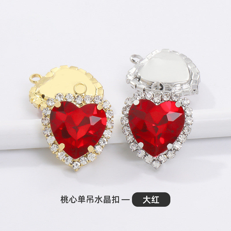 12mm Heart Shape Crystal Single Pendant Clothing Accessories Hand Sewn Perforated Claw