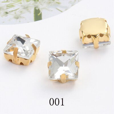 Square Shape 8/10mm Glass Rhinestones With Claw Sew On Crystal Stone Strass Diamond For Clothes Decoration Dress