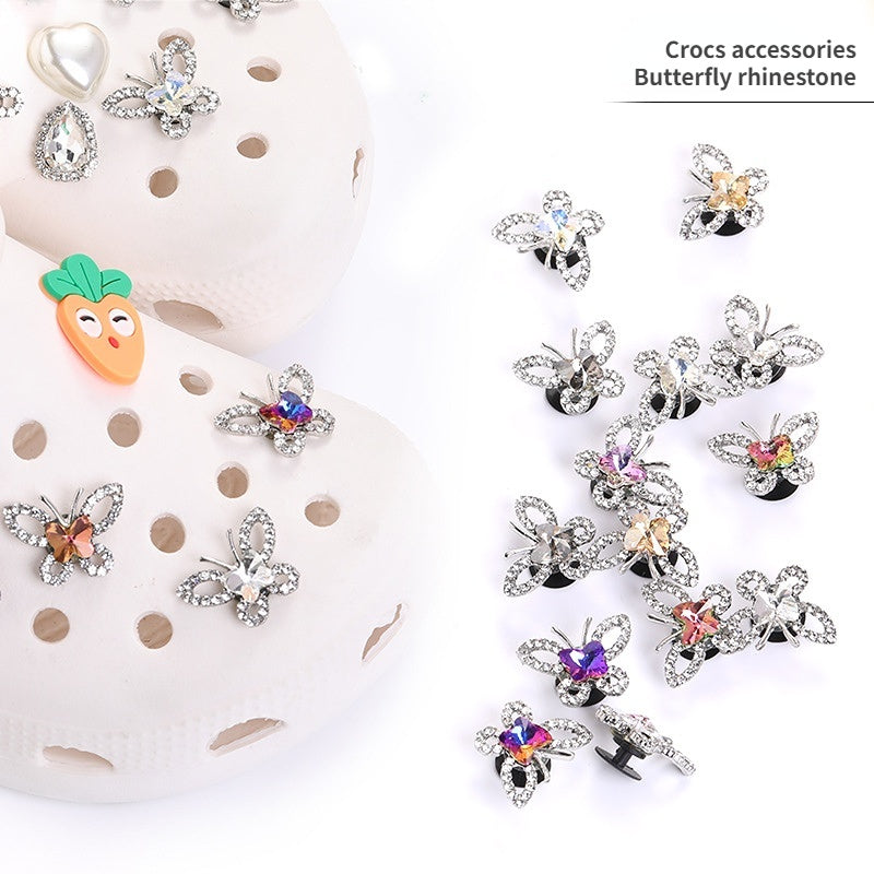 Butterfly Alloy Rhinester Garden Shoe Decorative Buckle Diy Crocs Accessories Floral Shoe Buckle Detachable Accessories