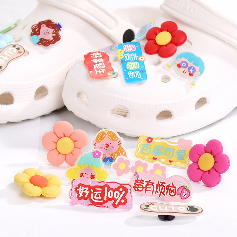Selling Crocs Diy Accessories Cartoon Cute Girl Head Acrylic Mixed Shoes Flower Shoe Buckle Accessories