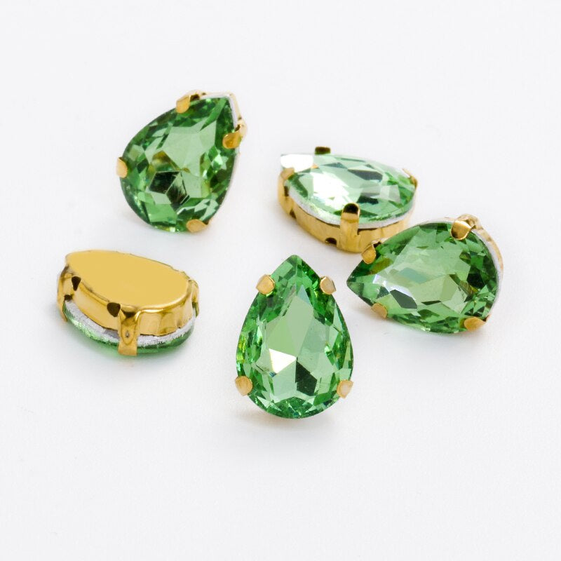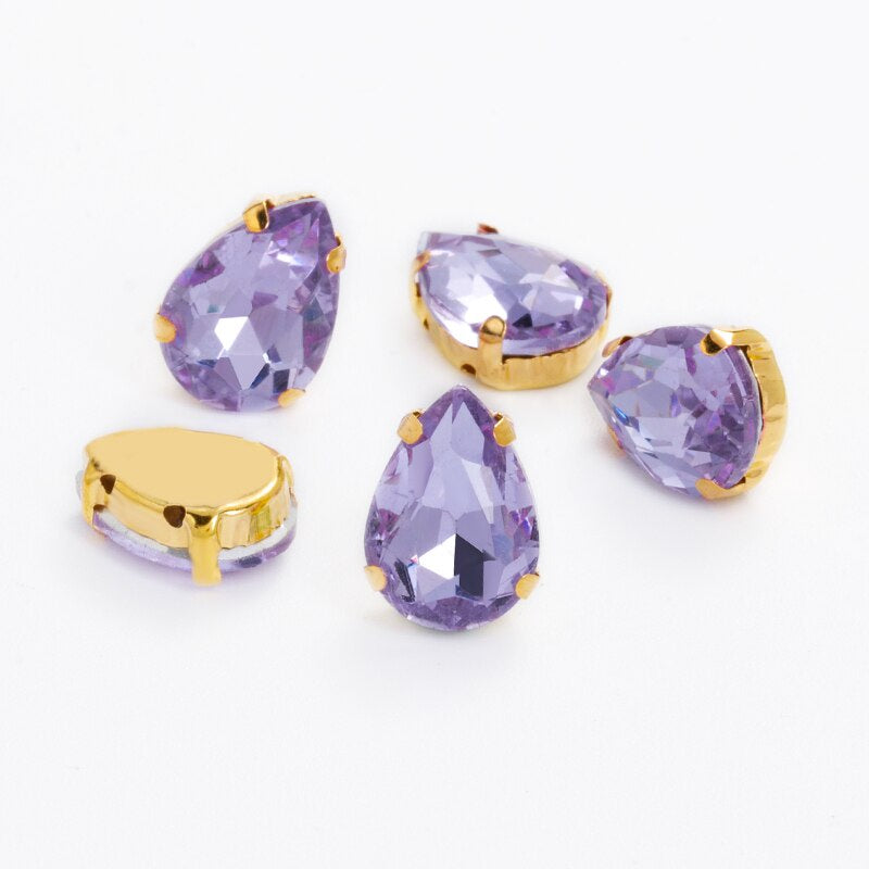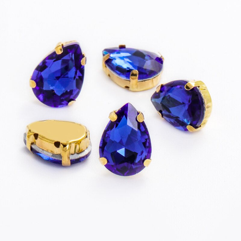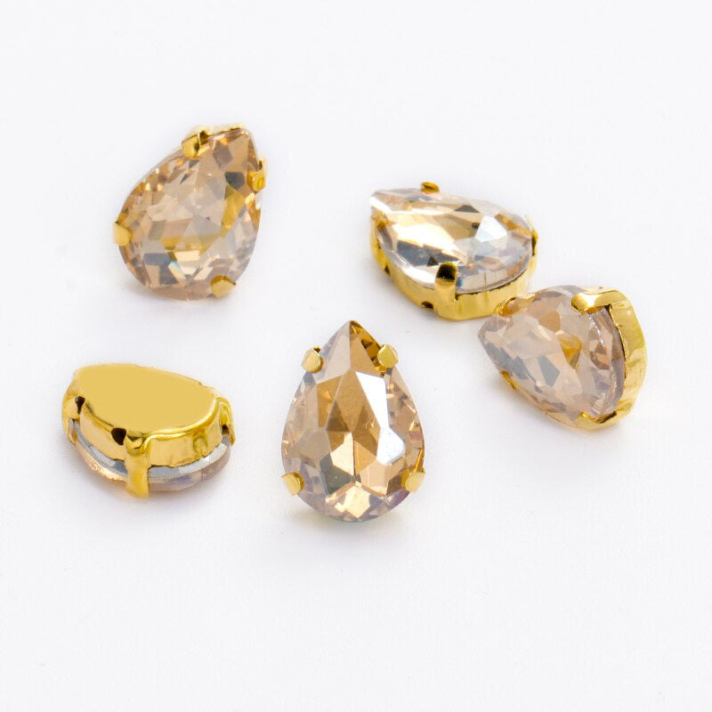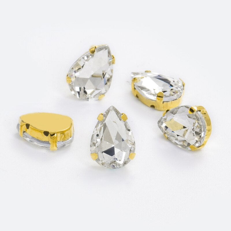 10X14/13X18mm 10pcsmm 10pcs Drop Rhinestone Sew-on Glass Golden Base Stones Crystal For Decoration and Crafts Clothes Sewn Rhinestones For Needlework