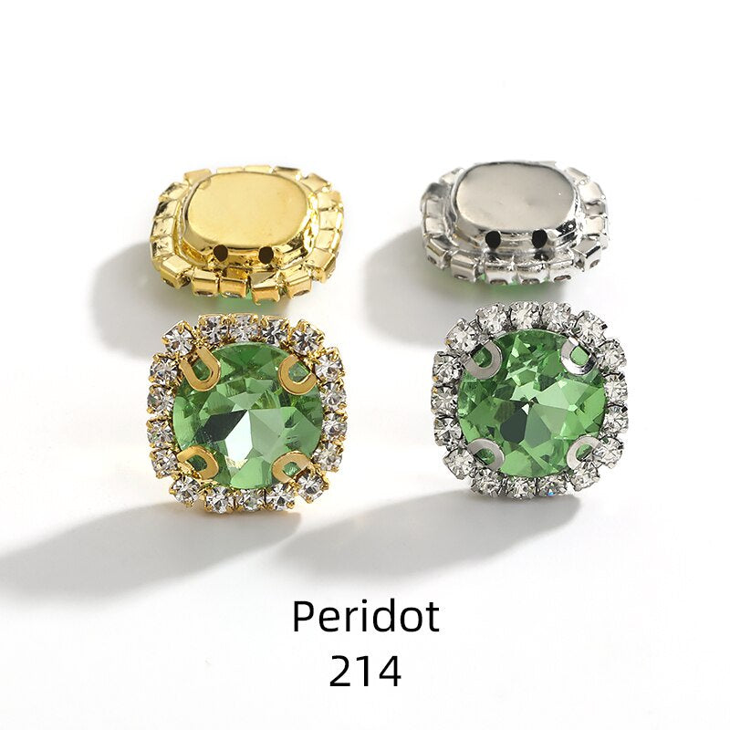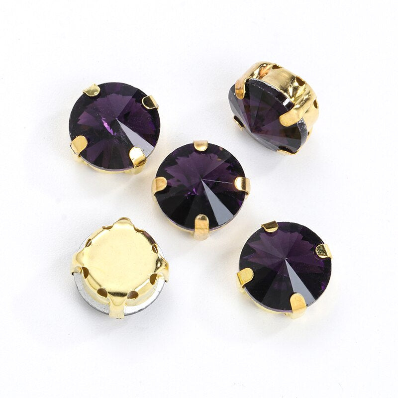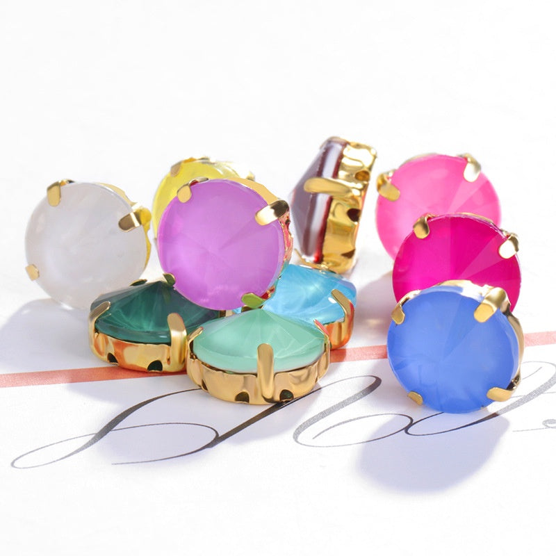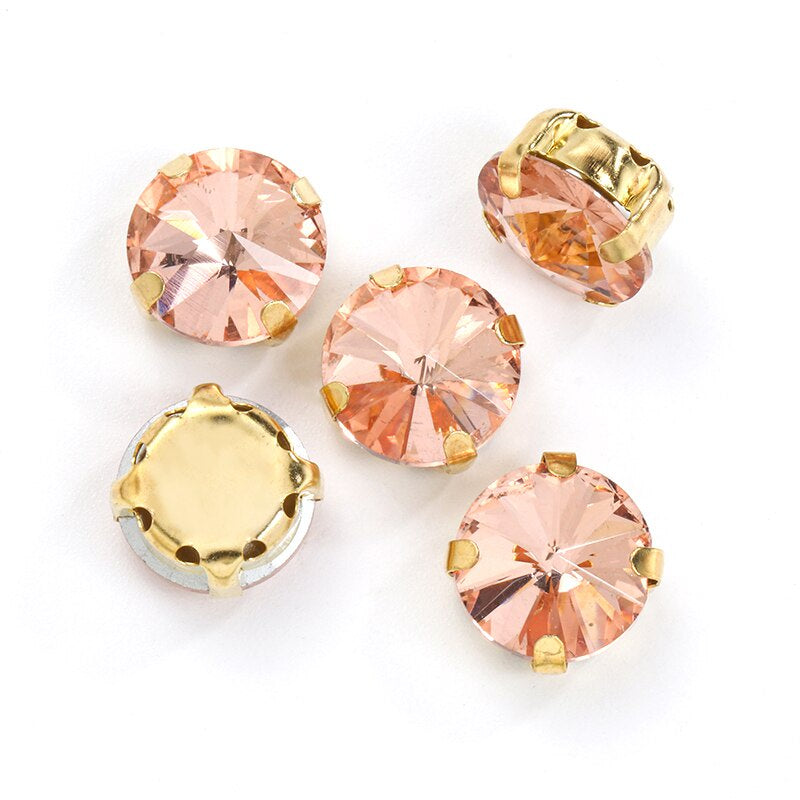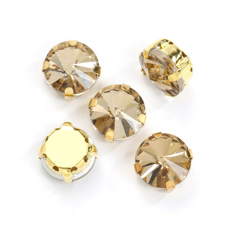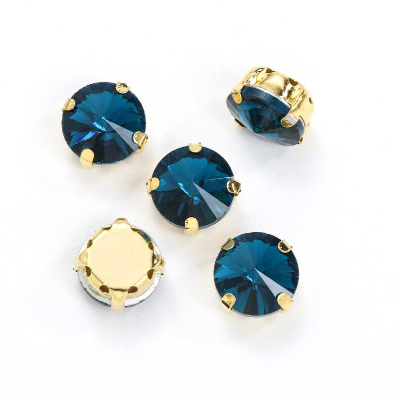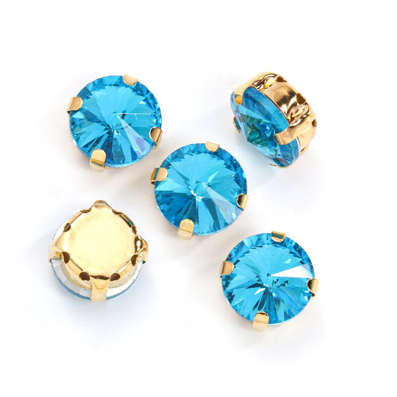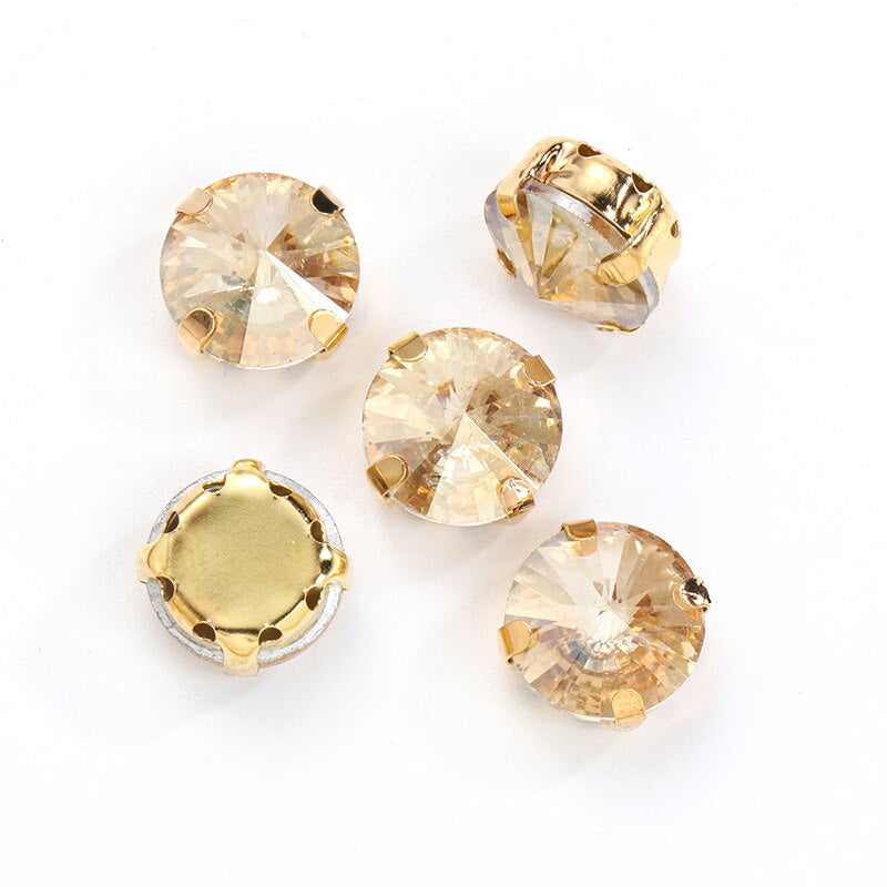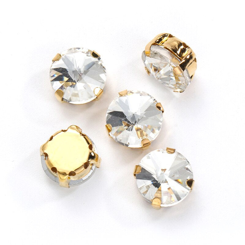 10pcs 12mm Round Rivoli Shape Crystal Rhinestone with Gold/sliver Bottom for DIY Handmade Clothing Accessories