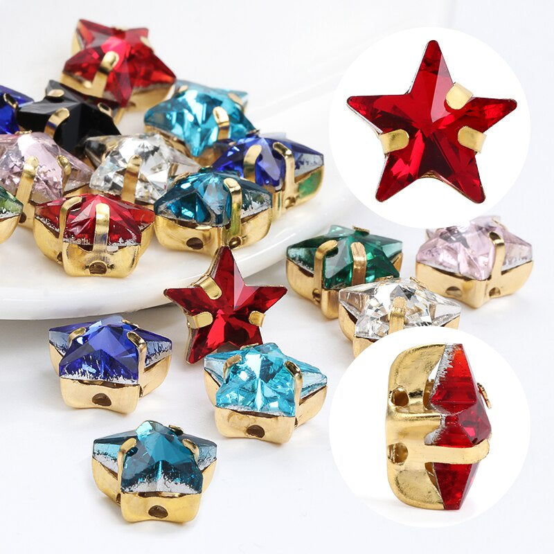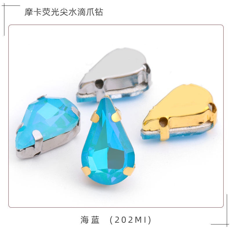 TonyBead Drop Rhinestone Sew-on Glass Golden Base Stones Crystal For Decoration and Crafts Clothes Sewn Rhinestones For Needlework