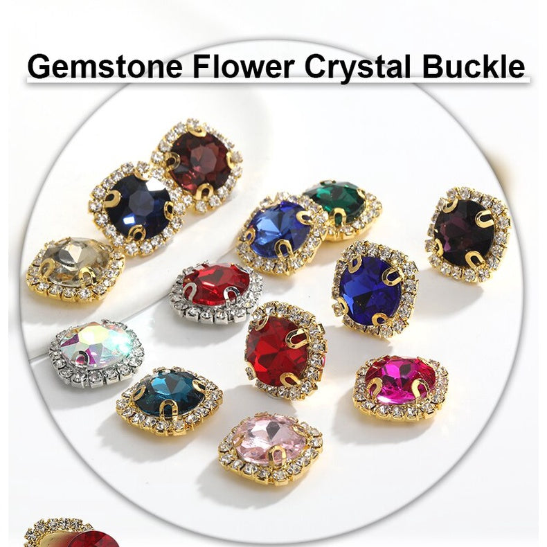 10pcs Gemstone Flower Rhinestone Round Crystal Pointback Strass Jewerlry Stone With Claw DIY Sewing Buttons In Clothes