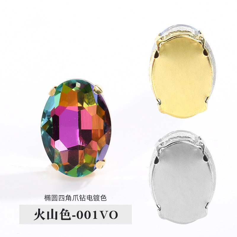 TonyBead 10*14mm/13*18mm Oval Four-corner Claw Rhinestone Electroplated Color Hand-sewn Crystal Glass Crystal Diy Clothing Accessories 10Pcs