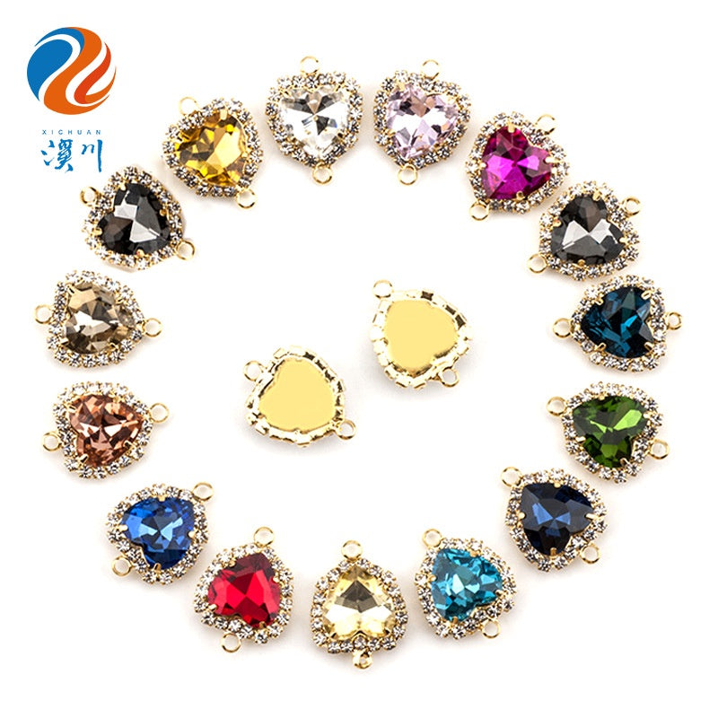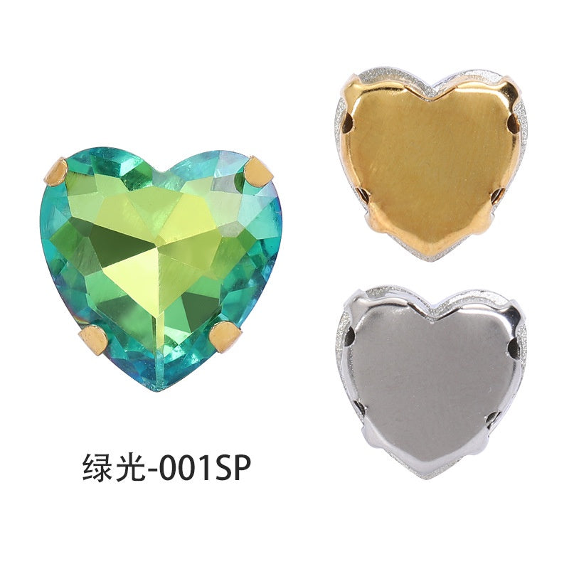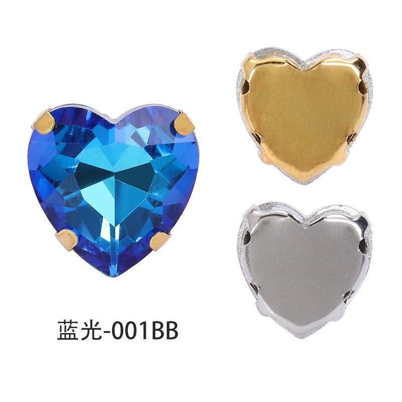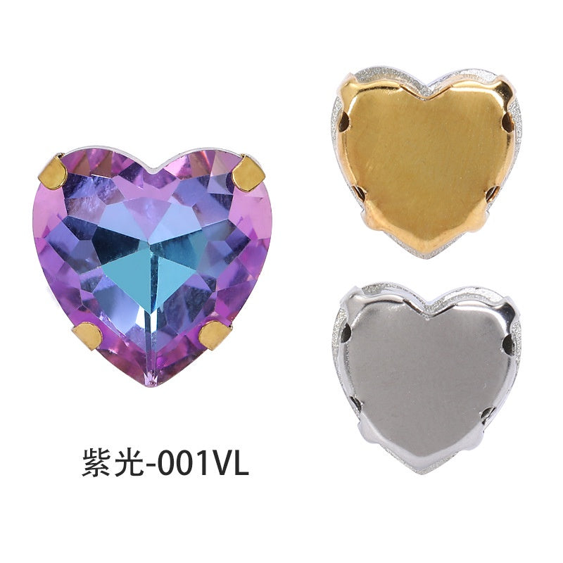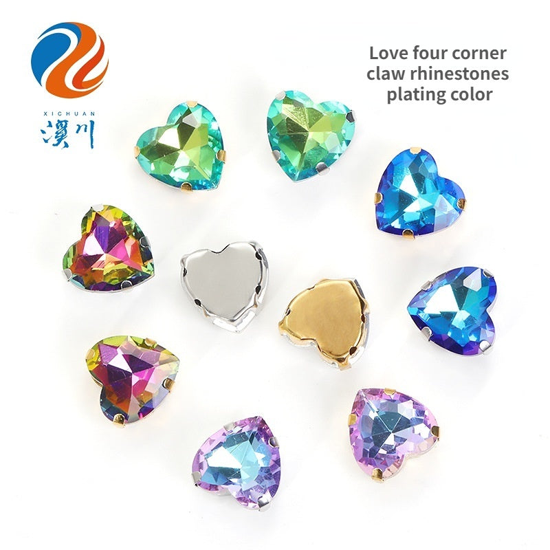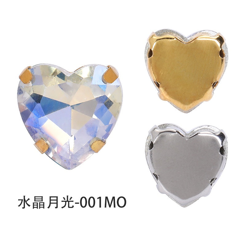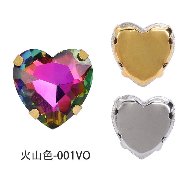 12mm Heart Shape Plating Shiny Color Clothing Accessories Rhinestone with Claw for DIY Jewelry Handmade